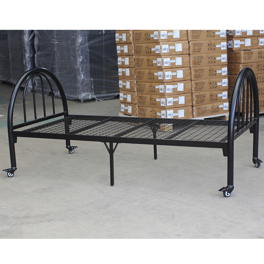 黑色帶輪子單層床